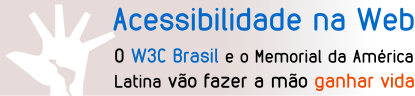 [image: Acessibilidade na Web - O W3C Brasil e o Memorial da América Latina vão fazer a mão ganhar vida] * * * A Web vai mexer com a Virada Inclusiva na próxima segunda-feira em São Paulo. *